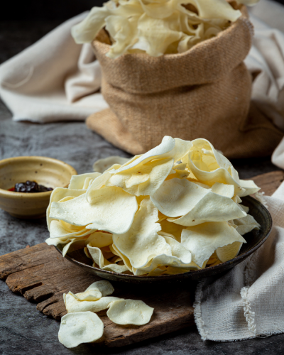 - Texture: Thin, crisp flakes; easily rehydratable
